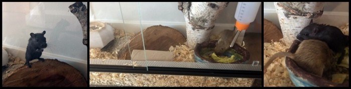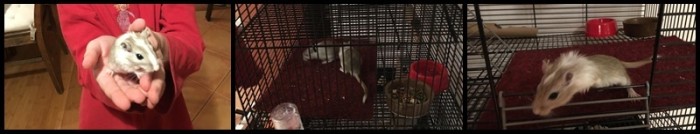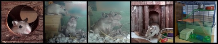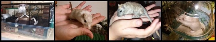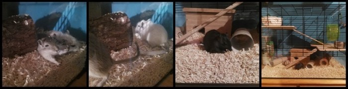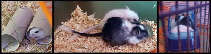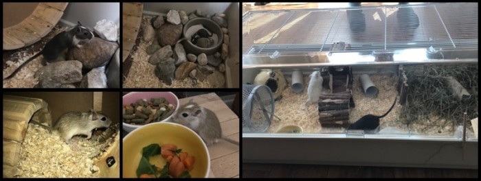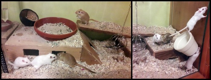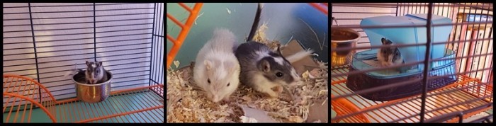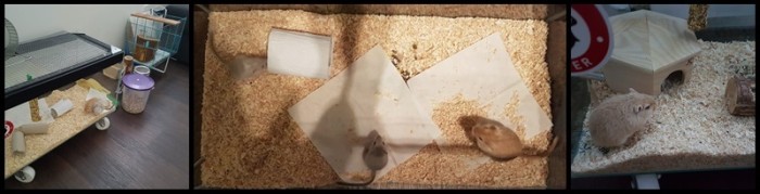 2.4.2019 = Dobrý den, myšáci jsou v pohodě, po cestě domů spali, večer se seznamovali s novým bydlením a dneska už běhají jak střely. Holky je chytí, já nemám šanci, jsou strašně mrštný a rychlý :-). V příloze posílám fotky.