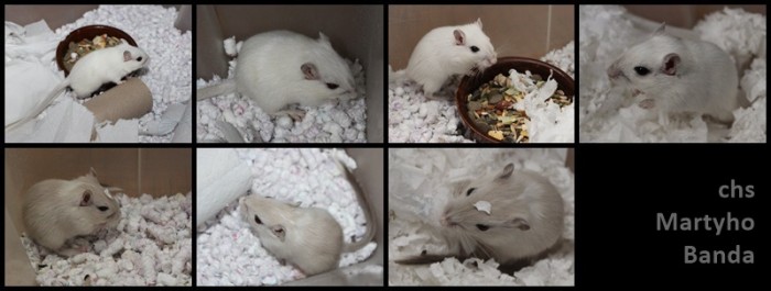 30.3.2019 = Dobrý den Jani, omlouvám se, že odepisuji až teď, ale byla jsem 2 dny pracovně mimo Prahu. Na seznamování jsme šli pomalu, v tu sobotu jsme holky dali do velké krabice, stará je honila a okusovala až mrňouskové pištěli, utíkali před ní a třásli se. druhý den už jim jen očuchala zadečky a vůbec se o ně nezajímala a tak to šlo až dneska jsme je dali do společné klece a je to v pohodě, sice se prckové ze začátku báli, ale brzy se okoukali a šmejdili, jen spinkají ve svém domečku a stará v pelíšku z papírových kapesníků, ale myslím, že by je nevyháněla. Takže v pohodě :) Koukala jsem na web, kolik máte nových miminek :) Moc díky a doufám, že už je vám lépe Katka U.