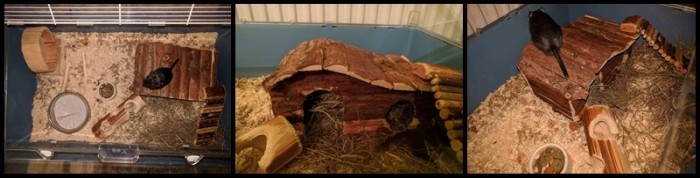 24.6.2019 = Dobrý den, Jano, Vše v pořádku, budujeme, vymýšlíme a tvoříme :) Černý, bych řekla že, není tak plachý jako hnědý, ten kaká kdykoliv ho vezmeme na ruku, nebo dáme do výběhu, dá se i hůře chytit, černý občas už vleže na ruku sám. Taky jsem si včera všimla, že černý ležel na zádech a hnědý na něm, jako by se trochu prali, je to možný? Posílám pár fotek, ale myšáci se teď po ránu nechtějí moc fotit. Díky a pěkný den! Katka