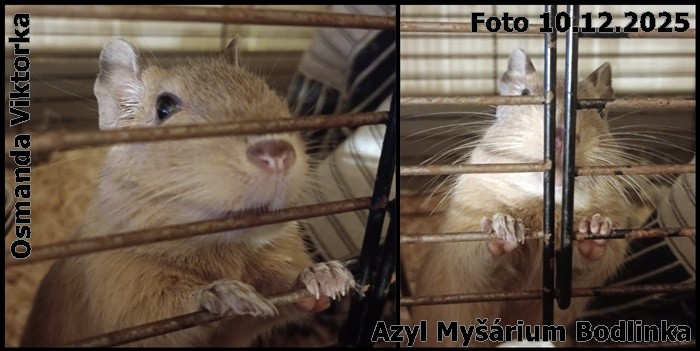Azyl tří osmáčích nalezenců z Prahy (12.7.2018) = 2 holky a 1 kluk, Agouti, asi mláďata 4 měs.?